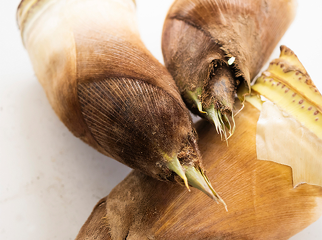 特に、京都府山城地区の「白子たけのこ」はよく管理された"たけのこ畑"で収穫されます。たけのこ畑は一般的な竹林とは異なり、日照不足では生育できない蕗やスギナが育つほど、日照が多いのが特徴です。また、夏には親竹の管理、冬場には藁を敷き詰めての客土など、より良い土壌作りを行い手間をかけて環境を整えます。そうした年単位の竹林管理の結果、柔らかい身でエグみが抑えられた高品質なたけのこを収穫することができます。収穫時に刺身として食すこともできるほどアクが少なく新鮮な山城産たけのこは、「京たけのこ」の代名詞とも言われています。